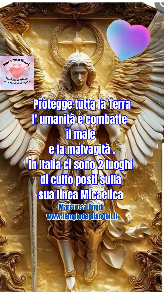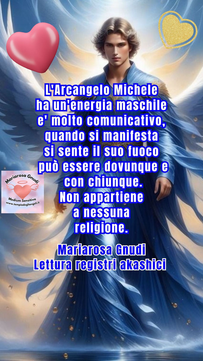 ll termine "Arcangelo" significa "Capo degli angeli". Michele è chiamato anche il "Principe delle milizie Celesti", dirige i suoi angeli definendoli la sua armata di Luce (schiera celeste), come un condottiero/guerriero che combatte il male e l'ombra in tutte le galassie dell'Universo creato da Dio. Spesso è raffigurato con una corazza da guerriero e la spada in atto di sottomettere il male sotto ai suoi piedi.
